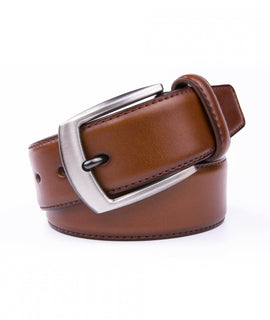 Genuine Leather Mens Belt, 1.5 Wide Classic Design Durable Belt - Cognac